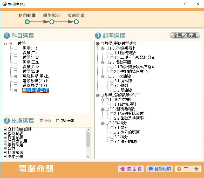 112學年上學期 高中命題光碟 南一版 數學科(一、二、三A、三B、四A、四B、選修甲上、選修甲下、選修乙上、選修乙下)(108課綱) 題庫光碟