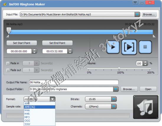 save them as your mobile ringtones. ImTOO Ringtone Maker